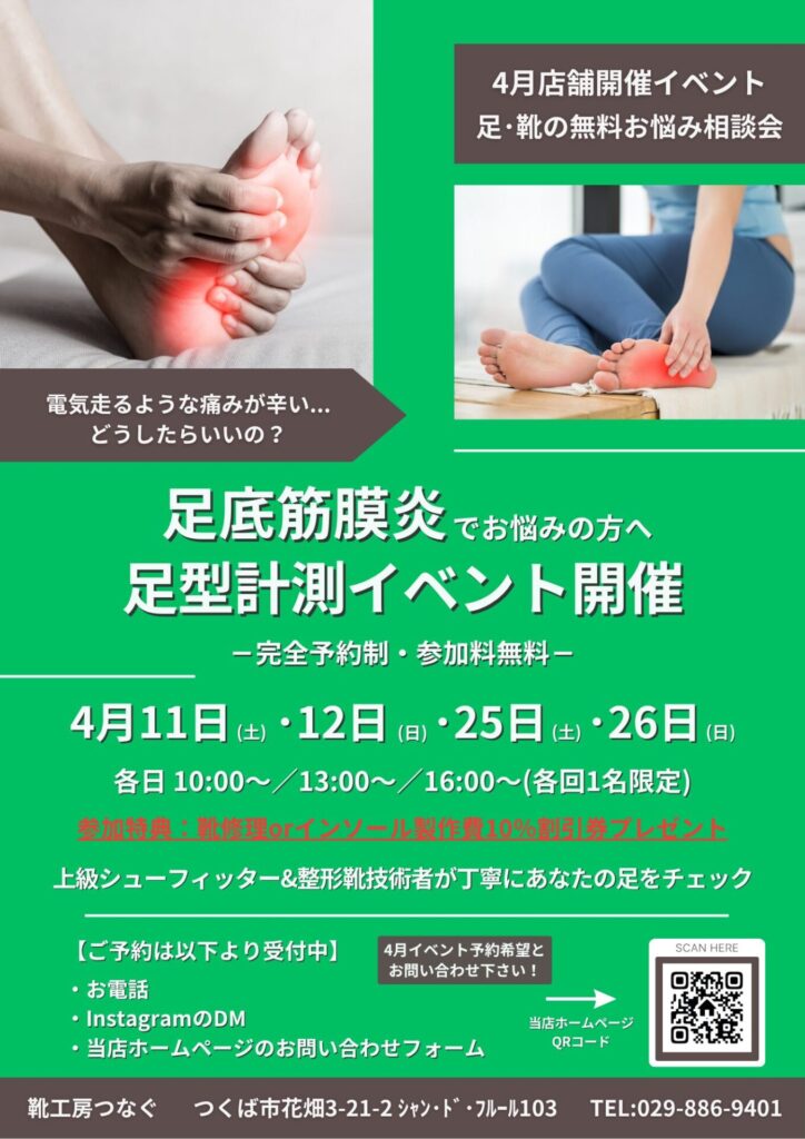 【足底筋膜炎でお悩みの方必見】4月無料計測イベントのお知らせ